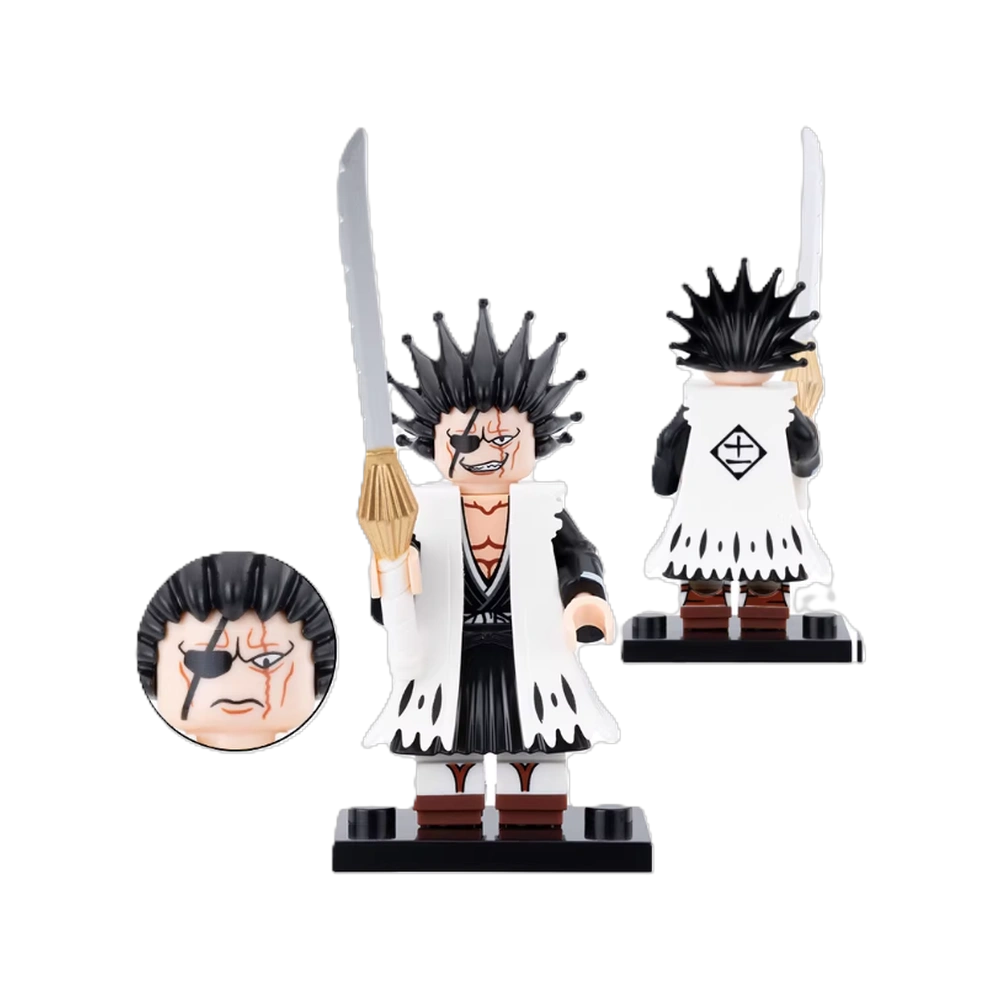 This independently produced custom brick figure is inspired by the Bleach character Zaraki Kenpachi. It features detailed fan-designed printing, character-inspired styling, and full compatibility with LEGO and other major brick systems.
